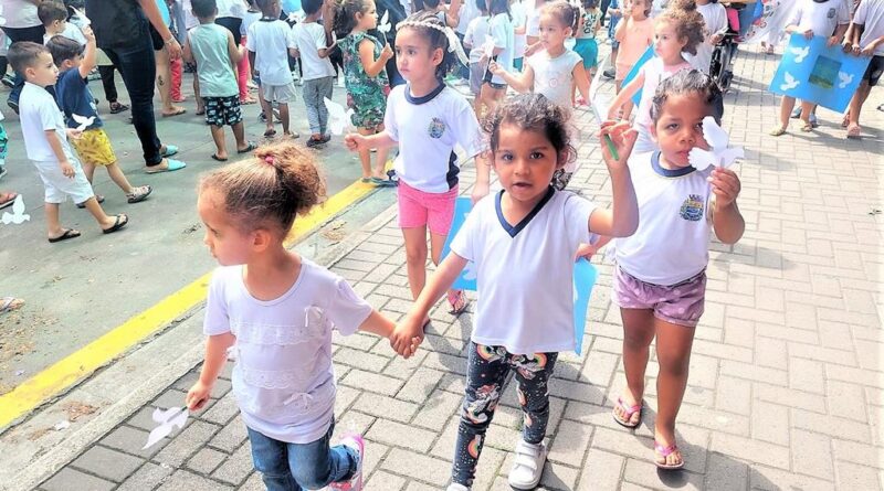 Mais de 200 crianças da Maternal Maria Meduneckas participaram da Caminhada da Paz.