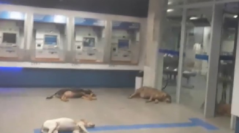 Cães invadem banco com ar-condicionado para escapar de calor de 40ºC