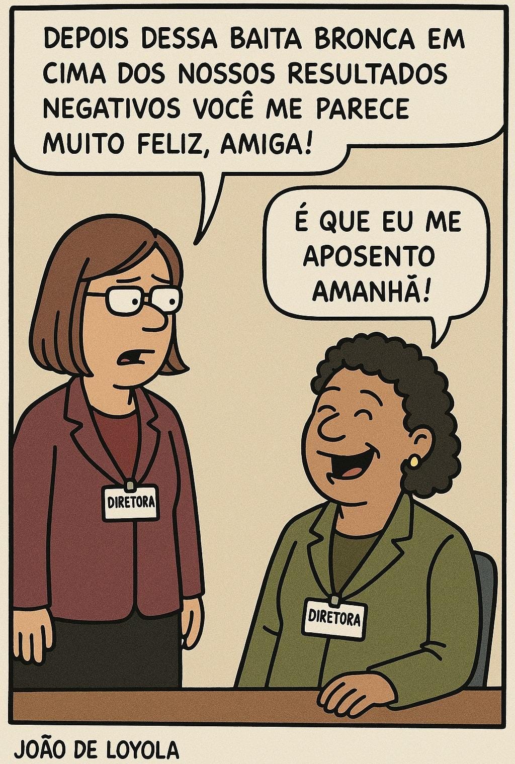 Uma certa empresa de capitalização, por exemplo, só convoca reuniões desse tipo após três trimestres consecutivos de resultados insatisfatórios — e ainda assim, baseadas em estudos aprofundados sobre o comportamento dos clientes e as causas da queda nas vendas. No setor privado, portanto, prevalece o princípio da análise fundamentada. Já na gestão pública da educação, muitas vezes salta-se diretamente para o juízo e para a punição, como se a escola fosse apenas uma engrenagem falha em uma linha de produção que precisa ser trocada.”