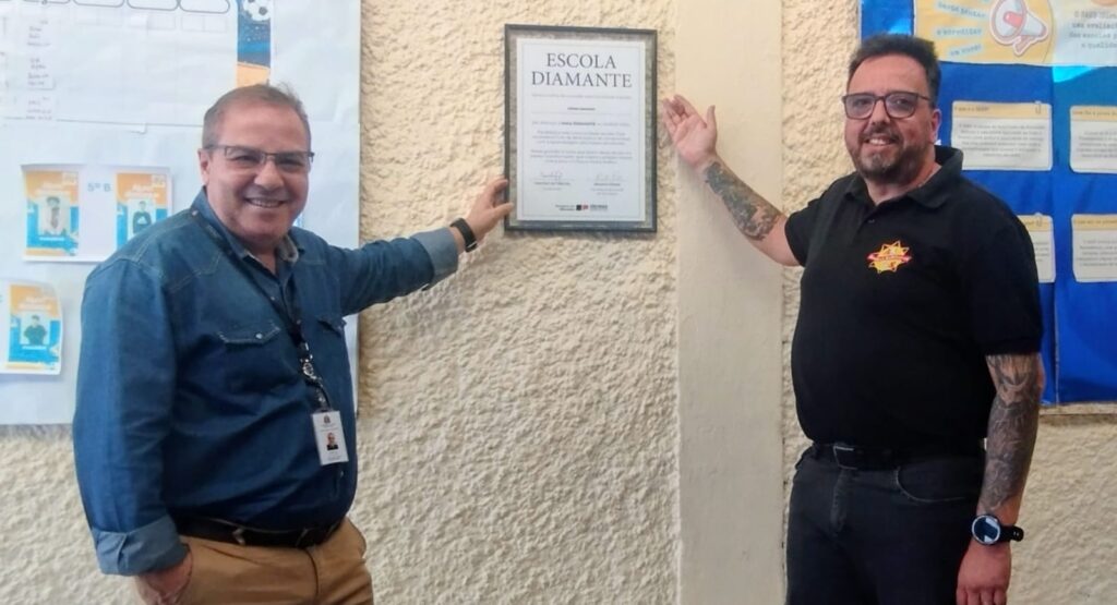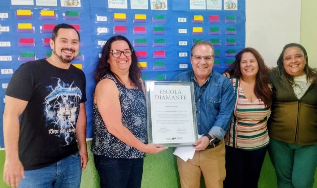 Em seguida Hilton Silva foi até a escola Profª Flora Stella, escola esta também premiada como Diamante, pelo resultado das plataformas.