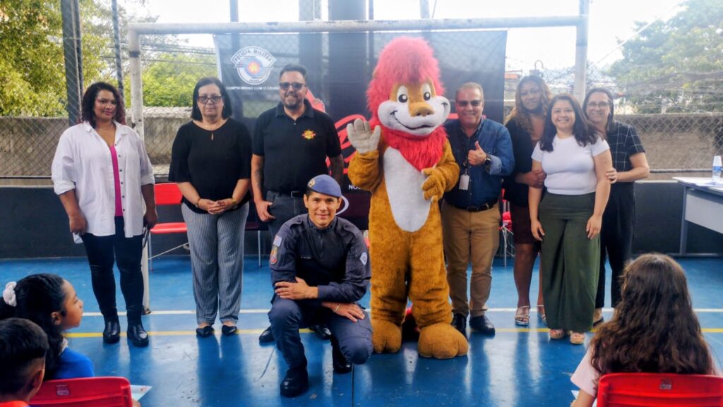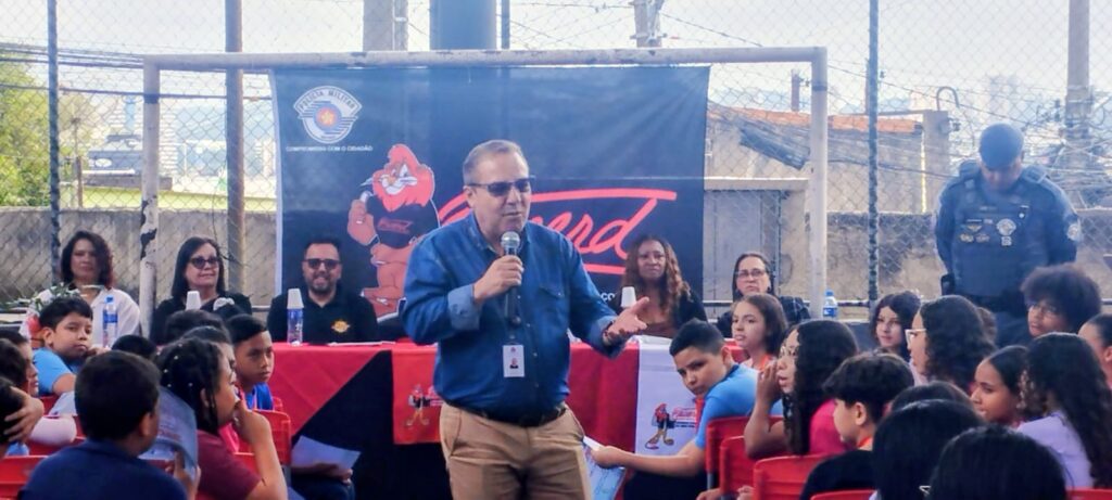 Quando chegou à escola estava acontecendo na quadra a entrega de diplomas do PROERD pela Polícia Militar do Estado de São Paulo aos alunos da escola Andrei Sakharov.