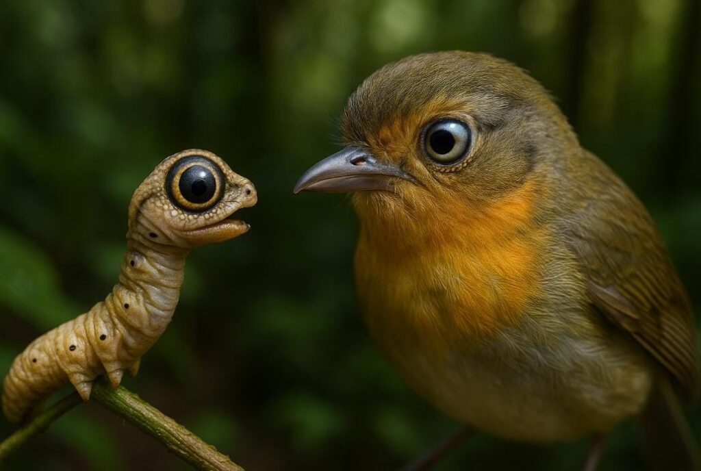 Diante de um olhar curioso e faminto, a larva da Hemeroplanes triptolemus, espécie de mariposa, joga sua melhor carta: parecer perigosa. Afinal, não existe uma segunda oportunidade de se causar uma primeira boa impressão.” Ah! Só pra avisar, o que parece a cabeça da larva na verdade é a cauda.