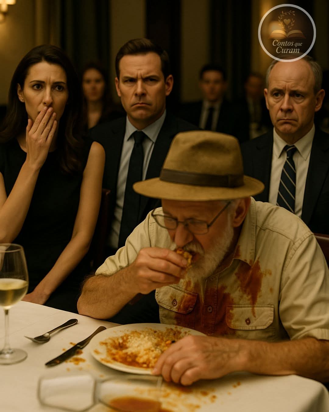As mãos daquele senhor de setenta anos não tinham firmeza e tremiam muito. Por isso, ele se sujou todo. Sujou a camisa branca com ketchup e caldo, atraindo os olhares de todos no restaurante. Mas o filho permaneceu ao seu lado.