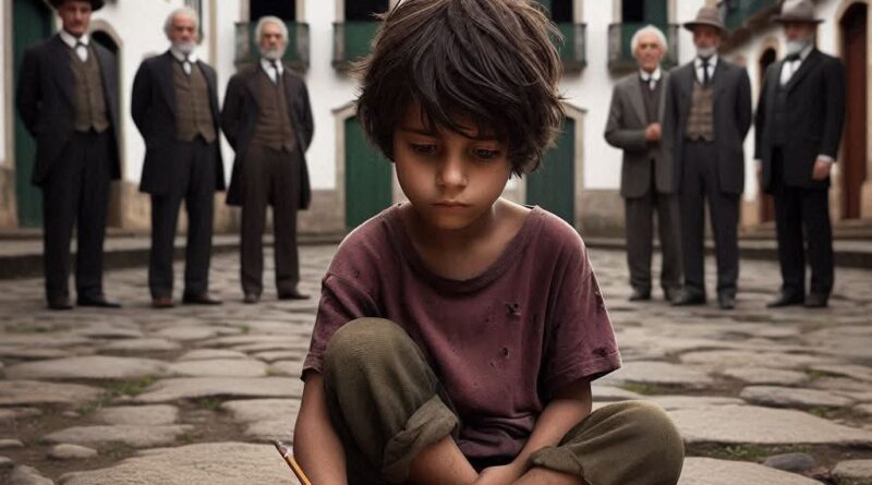 Cael levantou os olhos e respondeu com uma maturidade que cortava o coração: