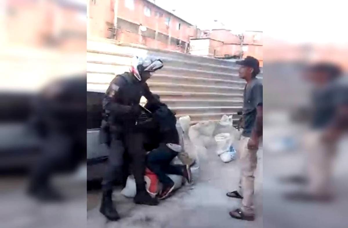 Enquanto o ladrão corre, envolto a gritos de moradores que presenciaram a violência, o PM consegue se levantar, pega um celular em sua motocicleta e, além disso, fala no rádio comunicador. O registro é interrompido nesse momento.