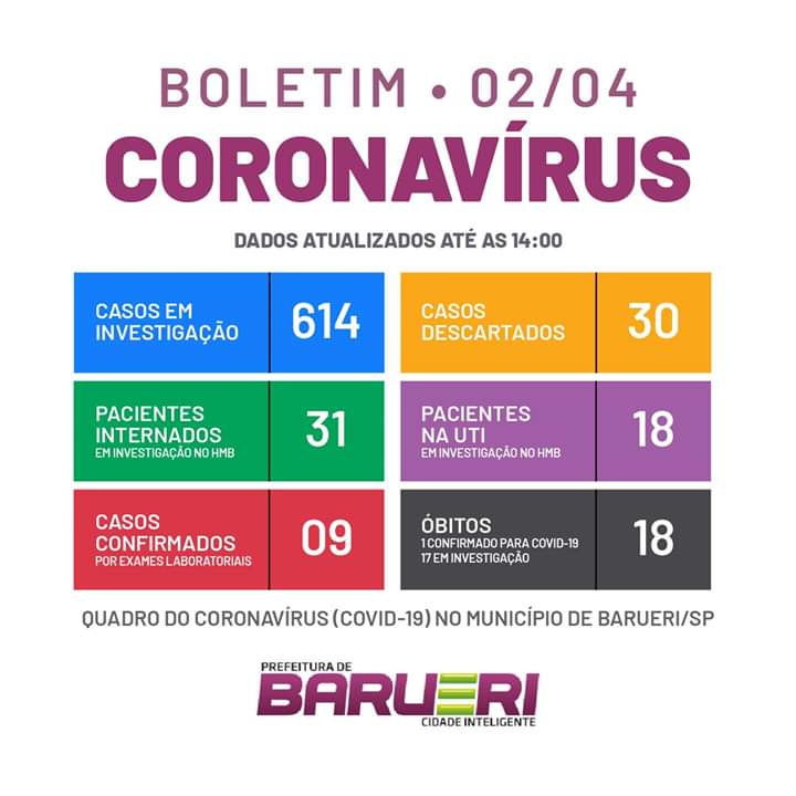 Atualização dos números do coronavírus em Barueri – 02/04