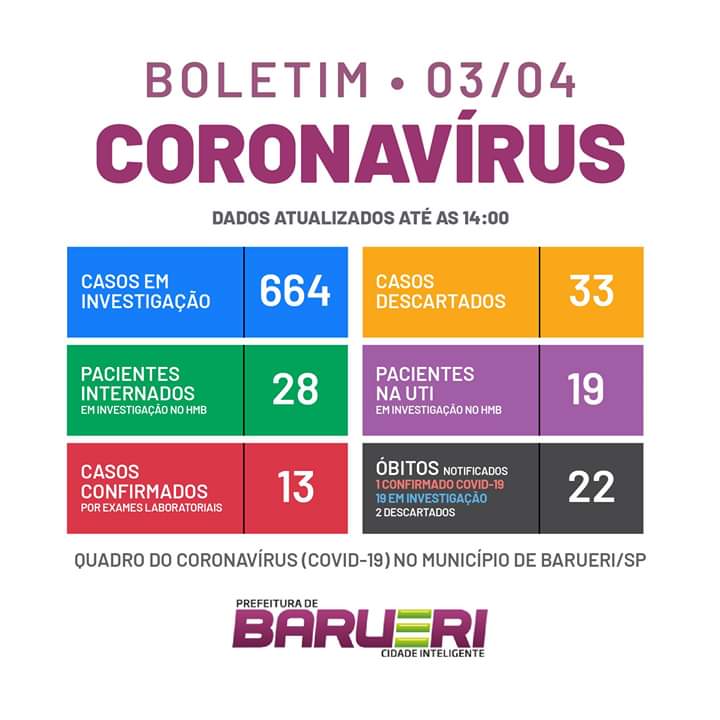Coronavírus em Barueri (03/04): Investigação de dois óbitos dá negativo para covid-19
