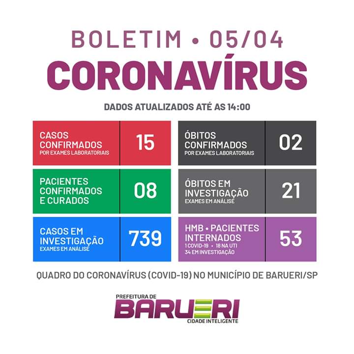 Números do coronavírus em Barueri (05/04)