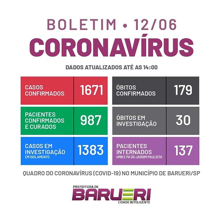Sem categoria Números do coronavírus em Barueri (13/06) 13 de junho de 2020 Tribuna de Barueri Confira: